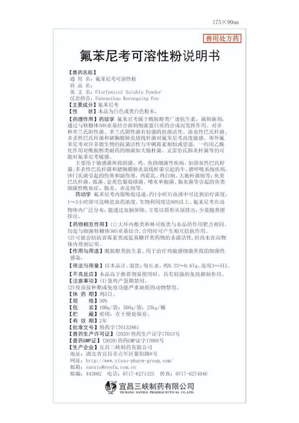用于治疗鸡敏感细菌所致的细菌性感染。