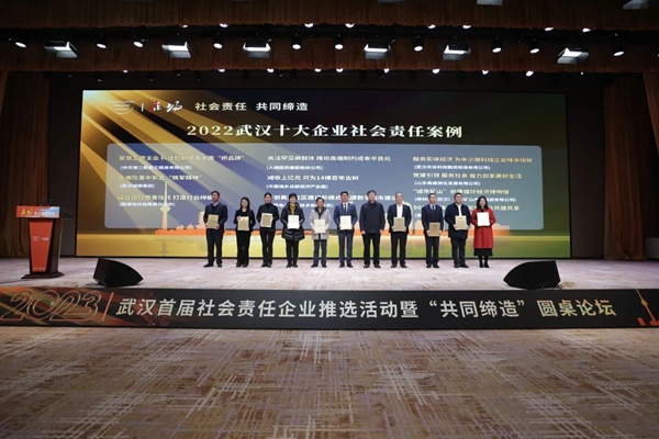 2月18日,“武汉首届社会责任企业推选”活动颁奖仪式在汉举行。世界杯下单平台网站官网集团等10家企业获评“2022武汉十大社会责任案例”奖,15家企业获评“2022武汉履行社会责任优秀企业”奖。