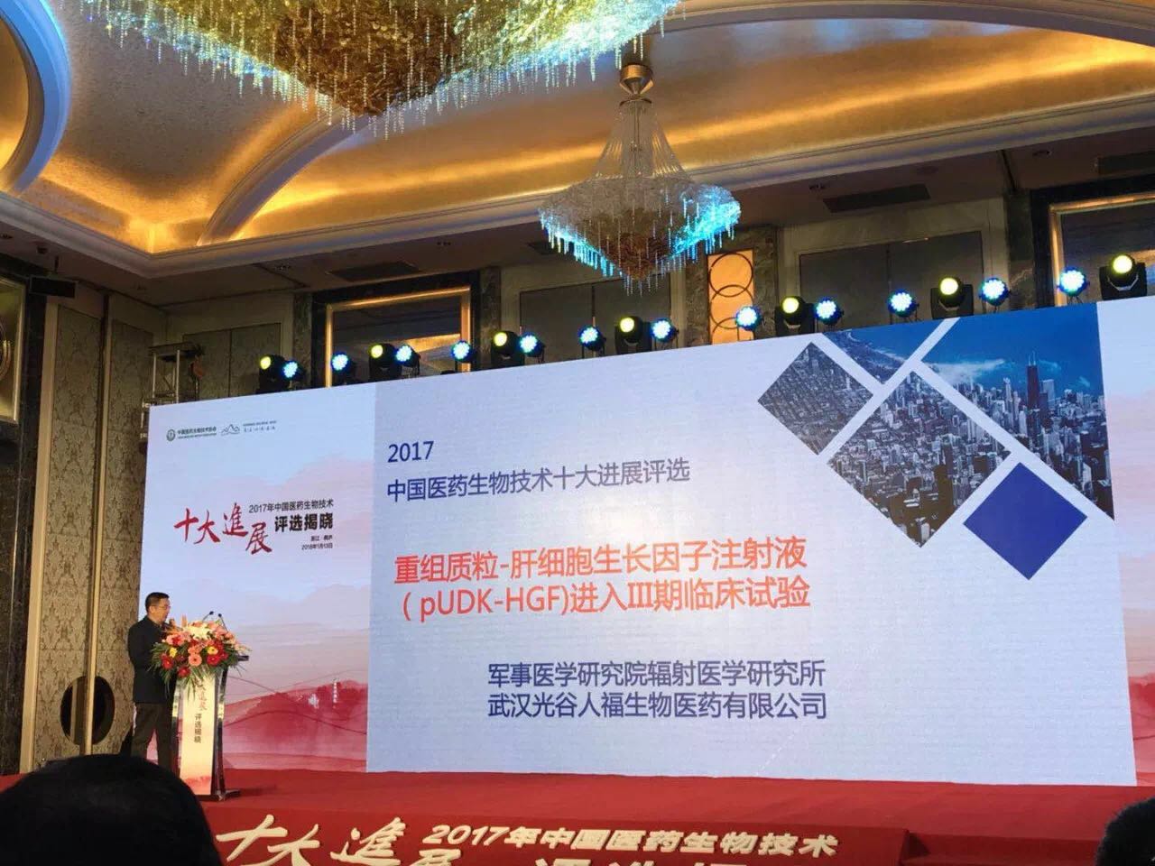 1月13日,由中国医药生物技术协会和《中国医药生物技术》杂志社共同主办的“2017年中国医药生物技术十大进展评选揭晓”活动在浙江桐庐举行,世界杯下单平台网站官网集团的“重组质粒-肝细胞生长因子注射液进入Ⅲ期临床”项目最终入选。出席本次活动的嘉宾有评选专家团代表魏于全院士、程京院士,主办和承办单位的领导、投资人和企业家、中央及地方十余家媒体记者。
