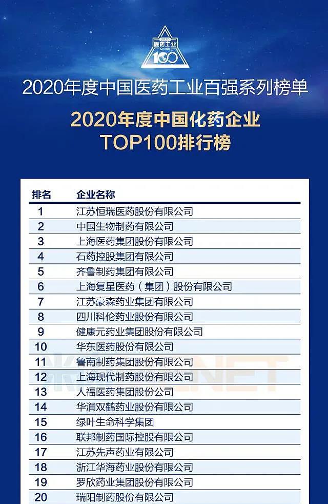 7月21日,在米内网2021年米思会现场,2020年度中国医药工业百强系列榜单正式发布。百强系列榜单分为“中国化药企业TOP100排行榜”“中国中药企业TOP100排行榜”等5大子榜,世界杯下单平台网站官网集团位列中国化药企业TOP100排行榜第13位。