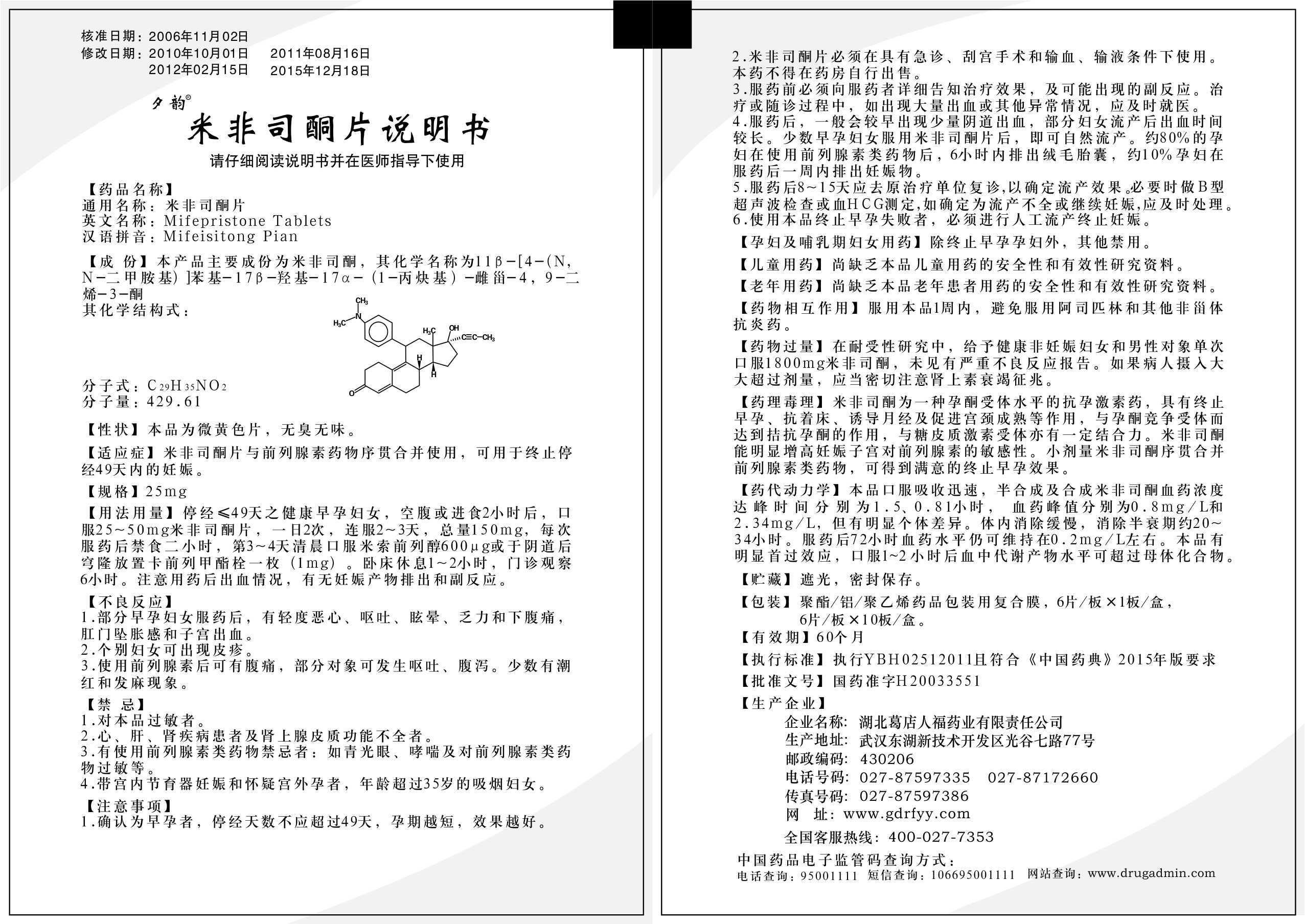 米非司酮片与前列腺素药物序贯合并使用,可用于终止停经49天内的妊娠。