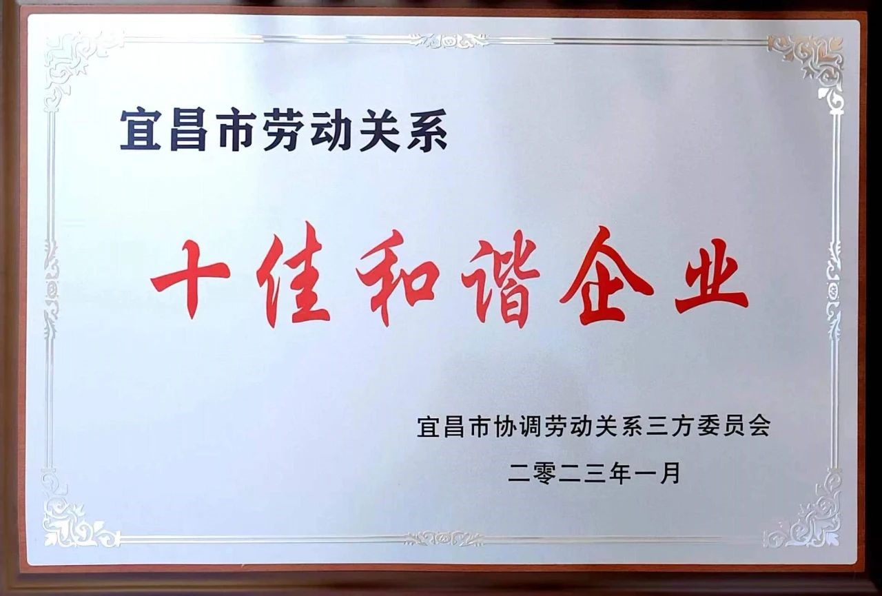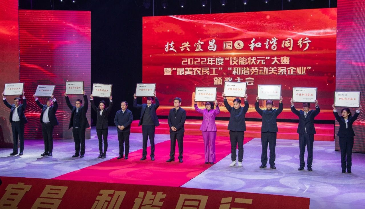 1月7日,宜昌市第三届劳动关系十佳和谐企业评选活动颁奖典礼在宜昌市广电中心一号演播大厅隆重举行。典礼表彰了宜昌市创建“劳动关系十佳和谐企业”及“最美农民工”“技能状元”代表,世界杯下单平台网站官网宜昌有限公司荣获宜昌市第三届“十佳和谐企业”称号。