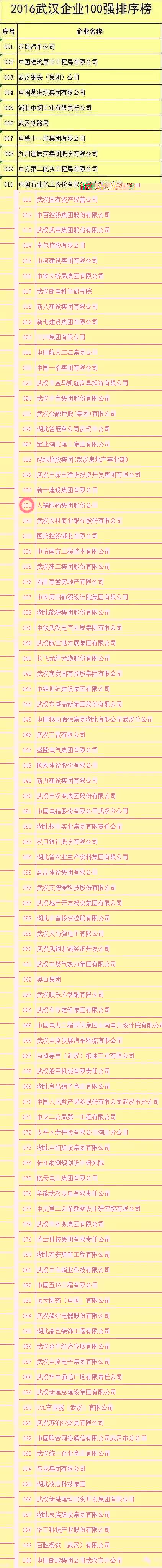 8月31日,2016年武汉企业100强榜单揭晓,世界杯下单平台网站官网集团排名第31位,较上年度排序上升7个位次。该榜单由武汉企业联合会、武汉市工商联、武汉企业家协会主办,按照2015年度营业收入进行排序。