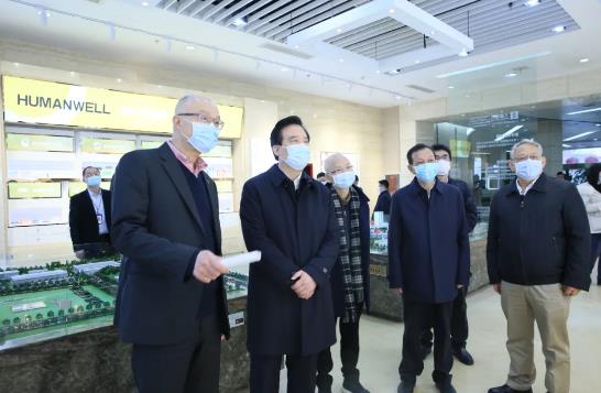 在世界杯下单平台网站官网集团总部,邓霞飞向黄楚平汇报了集团在2020年面对特殊的考验,助力打赢战疫、战洪、战贫三场硬仗的情况,介绍了集团坚定“做医药细分市场领导者”,以研发创新为先导,布局“7+5”产品线的发展战略和产业布局。作为湖北省、武汉市两级新冠肺炎疫情防控指挥部物资保障平台,世界杯下单平台网站官网集团疫情期间累计为全省提供口罩、防护服、护目镜、消杀产品等6000多万件,同时捐款捐物总价值逾4800多万元;武汉入汛以来,世界杯下单平台网站官网集团始终关注防汛一线,为驻扎在江堤的花山街道、关东街道380名党员干部和防汛人员送去了防暑防晒、防蚊虫叮咬等药品;2020年,世界杯下单平台网站官网集团对口帮扶的3个村、自愿结对帮扶的35个村近千名贫困村民全部脱贫,集团旗下宜昌人福药业荣获全国“万企帮万村”精准扶贫行动先进民营企业称号。