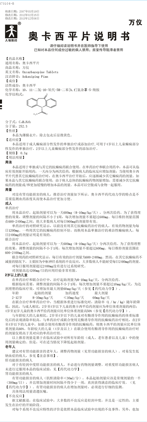 万仪®奥卡西平片